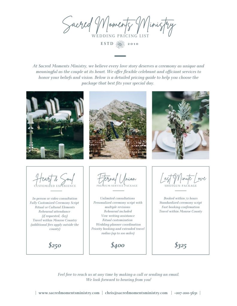 Sacred Moments Ministry wants to help you mark your life’s meaningful moments with ceremonies that reflect your values, spirit, and journey – crafted with heart, presence, and thoughtful intention.